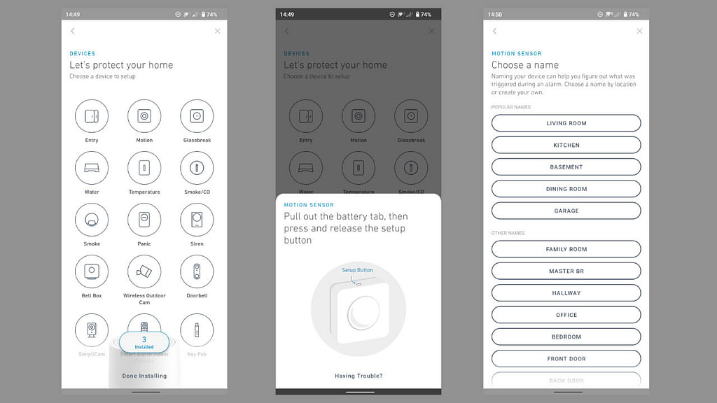 Каждое устройство добавляется в систему по очереди (SimpliSafe)