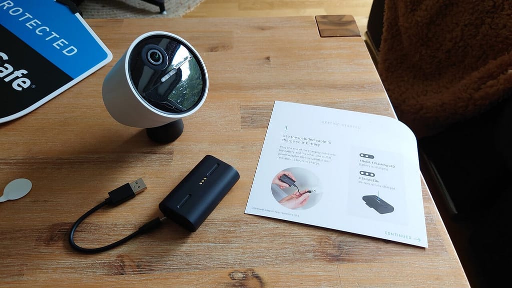 Конечным устройством для установки является наружная камера, к которой прилагаются отдельные инструкции. Первым шагом является зарядка аккумулятора – он поставляется с разъемом USB, но без вилки, поэтому для его включения вам потребуется что-то вроде зарядного устройства для телефона.