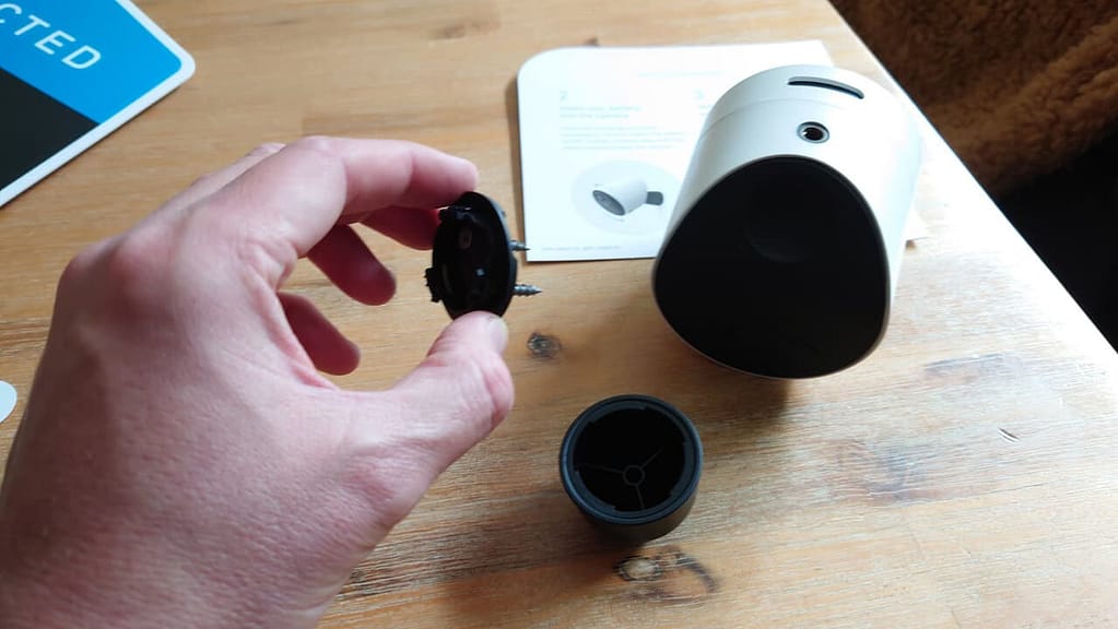 Существует два варианта крепления камеры: винт для штатива в нижней части устройства или, как мы решили использовать, винты для крепления к стене или забору. Чтобы использовать их, вам нужно снять с устройства магнитный кронштейн и прикрутить его к поверхности, на которую вы хотите его установить. Затем камеру просто прикрепляют обратно к кронштейну и поворачивают, чтобы получить наилучший обзор.
