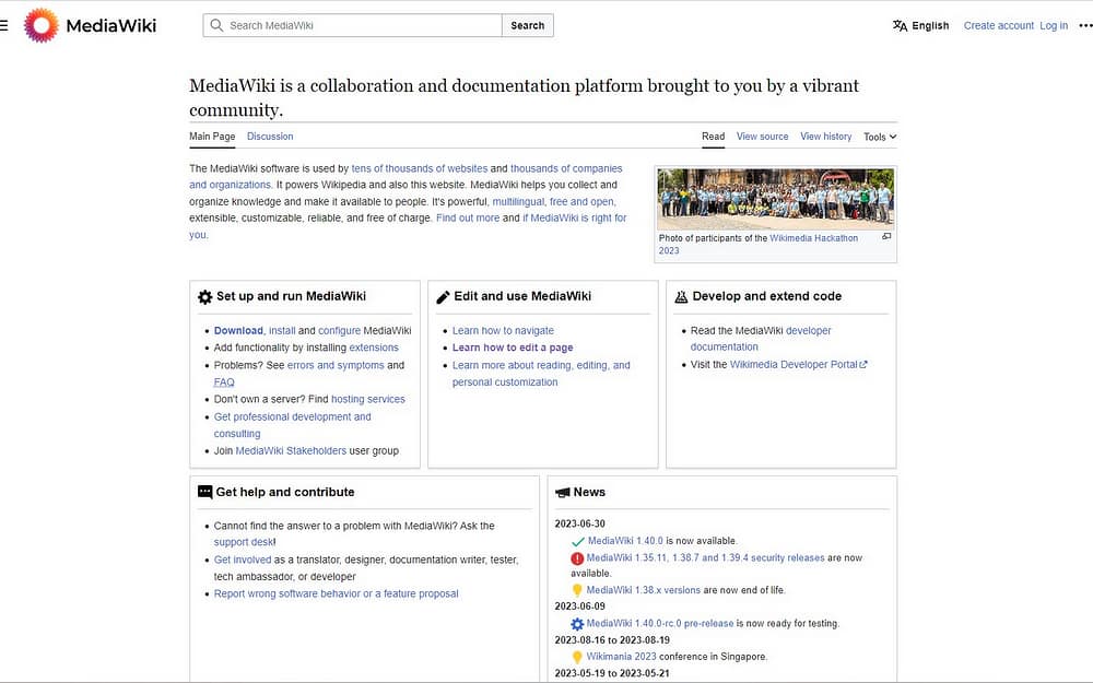 | О компании | Программное обеспечение MediaWiki используется десятками тысяч веб-сайтов и тысячами компаний и организаций. Он поддерживает Википедию, а также этот веб-сайт. MediaWiki помогает вам собирать и систематизировать знания и делать их доступными для людей. Это мощный, многоязычный, бесплатный и открытый, расширяемый, настраиваемый и продукт. |