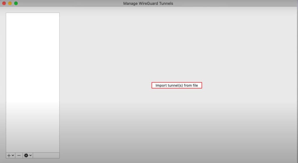 - После установки откройте Wireguard и нажмите на кнопку Импортировать туннели из файла .