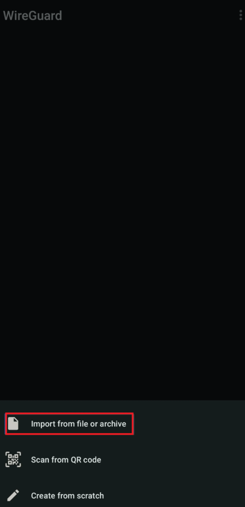 - Выберите файл конфигурации вашего сервера WireGuard.