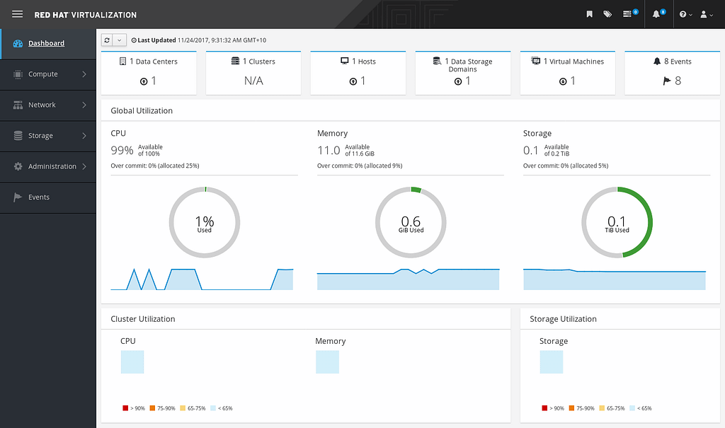 oVirt использует проверенный гипервизор KVM и разработан на основе различных других проектов сообщества, включая libvirt, Gluster, PatternFly и Ansible.