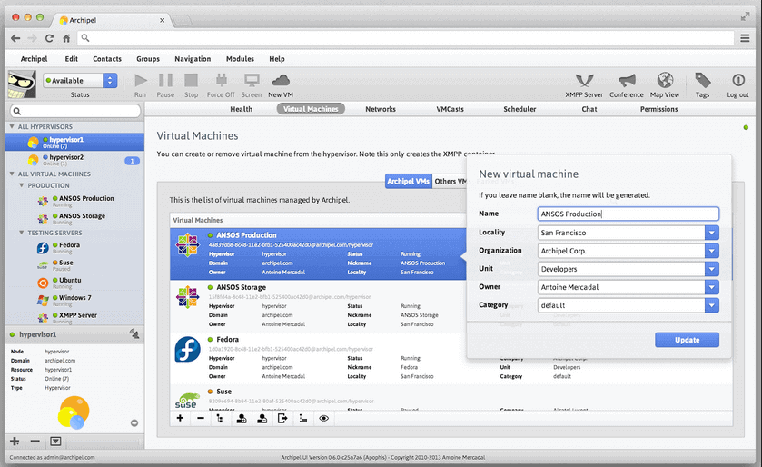 Archipel — это решение с открытым исходным кодом для управления виртуальными машинами. С ее помощью вы можете управлять несколькими локальными виртуальными машинами, или тысячами VPS в различных дата-центрах.