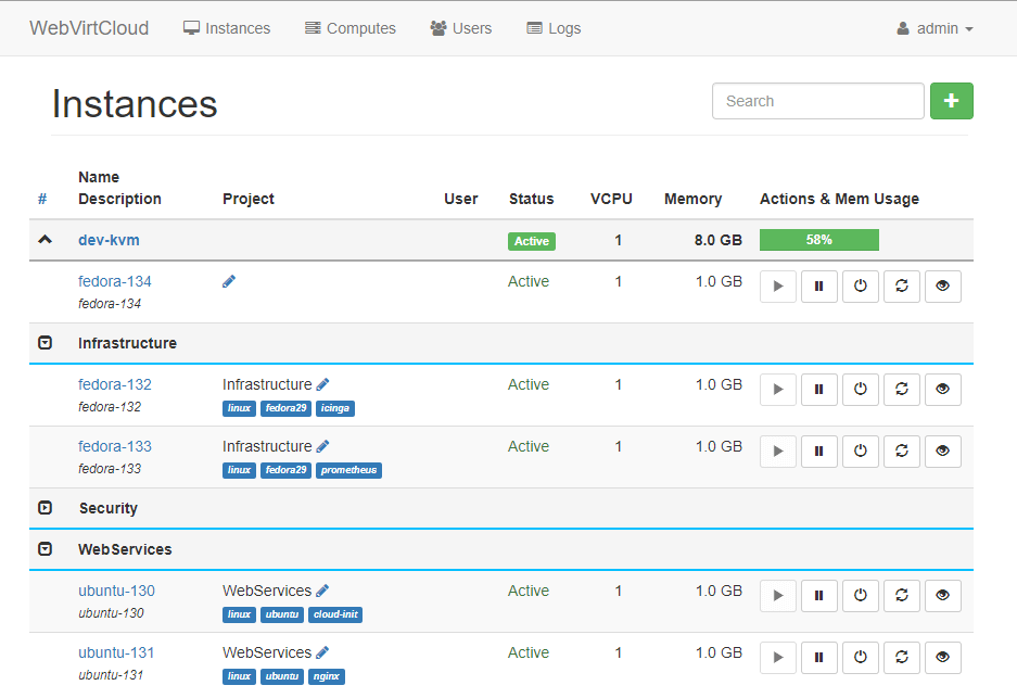 WebVirtCloud — это консоль управления виртуальными машинами с открытым исходным кодом на базе libvirt. Она позволяет пользователям управлять доменами и их ресурсами. VNC-вьювер через туннель SSH предоставляет графическую консоль для гостевого домена. На сегодняшний день гипервизор поддерживает только виртуализацию QEMU/KVM.