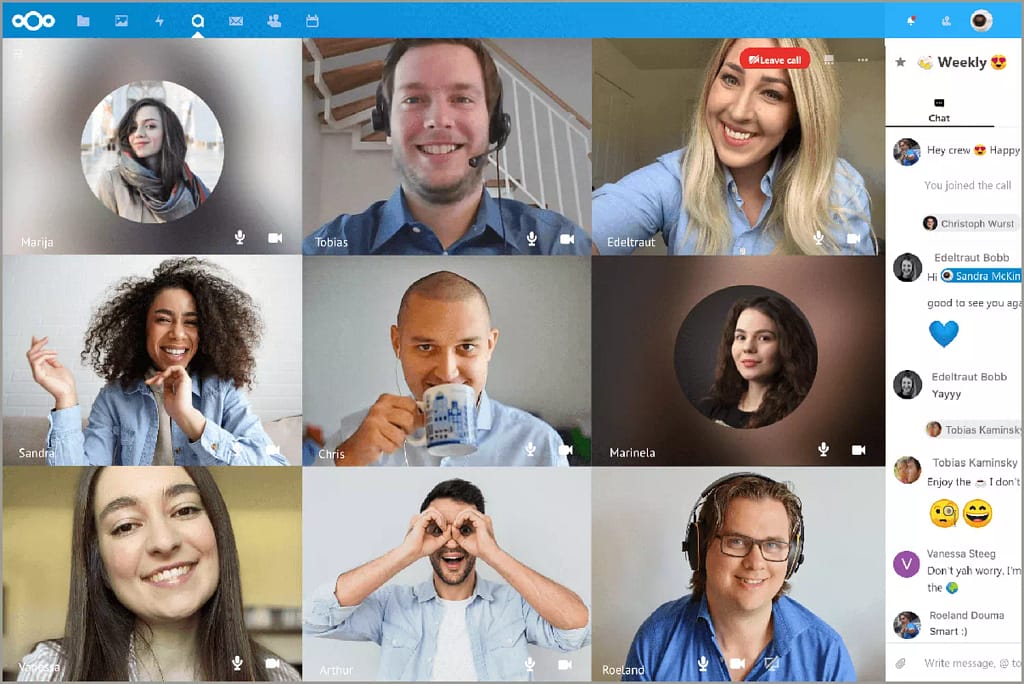 - Talk. Позволяет работать с чатами, видео-звонками и аудио-звонками из Nextcloud, используя WebRTC.